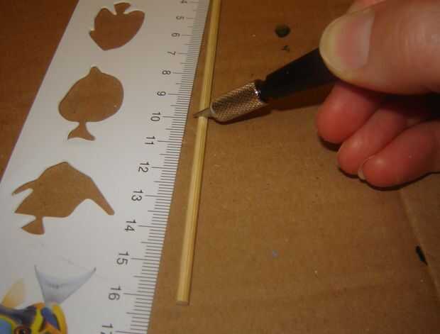 Con un cuchillo afilado o tijeras cortan el pincho de bambú de las siguientes longitudes: