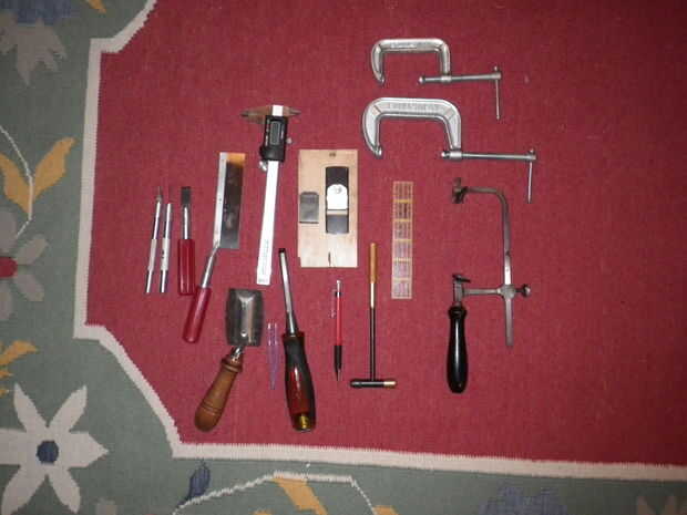 .3mm lápiz y una regla de 6 pulgadas fueron utilizadas para la mayor parte de la disposición. Yo principalmente uso las pinzas de comprobación de espesor de chapa, se sentían como si fueran diferentes espesores. Revisé y tenía tal vez una variación.005 pulgadas entre las chapas diferentes.