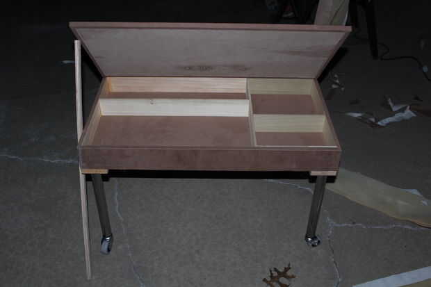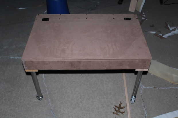 con nuestros hijos se movió arriba, mi esposa finalmente consiguió una habitación de su propio en el principal nivel.  Necesitaba una mesa fuerte para apoyar su máquina de coser y sobre todo dos tejer máquinas - la pinza de estas cosas al escritorio