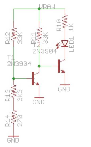 Hay muchas combinaciones de resistencias que crearán el divisor de tensión, pero queremos que los valores a ser lo suficientemente grande como para que el circuito consume muy poca corriente normalmente, todavía lo suficientemente pequeño como para que no hay todavía suficiente actual va en la base del primer transistor para encender (después de todo, los BJT es dispositivos basados en la corriente). Utilicé las mismas resistencias de 33K para el valor superior como lo hizo en el post del blog. Desde.62 voltios es el 9.5% del umbral de 6,5 voltios, necesitaba la resistencia inferior a 9,5% del total, lo que significó unos 3600 ohmios. El valor estándar de resistencia de 3.3K es demasiado bajo y 3,9 K es demasiado alto, así que usé una resistencia de 3.3K en serie con un 270 ohm uno crear 3570 ohmios, que funciona perfectamente cuando lo pruebo con mi alimentación. (Estas resistencias son todos +-5%, aunque probé con un multímetro para conseguir como cerca como sea posible.)