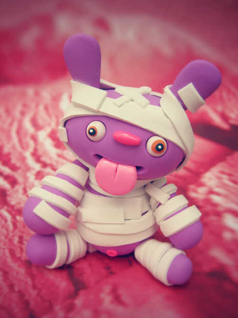 Añadir la momia brazos y piernas al cuerpo - les alise suavemente sobre el cuerpo. Añadir pequeños detalles, como un pequeño ombligo rosado en el estómago. El ombligo es una bola pequeña de barro en el vientre con la herramienta de la aguja.