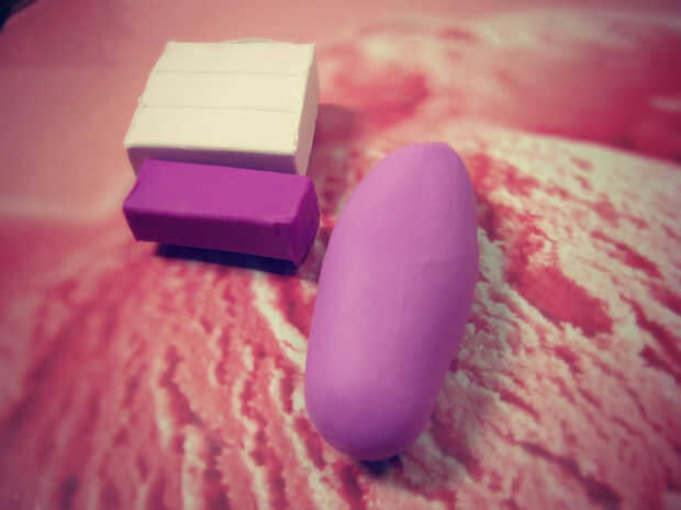 Mezclar amasando con las manos hasta que se mezclan bien los colores púrpura y blanco. Si prefieres la púrpura el color original recuerda a amasar para que sea flexible.