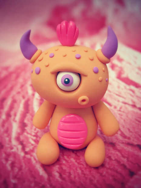 Hornea como se indica arriba. Una vez frío, añadir Sculpey Glaze dondequiera que usted quisiera, también con témperas blanca y un pincel pequeño, agregue un punto blanco en el ojo - esto le da vida. Ahora estamos listos con los cíclopes.