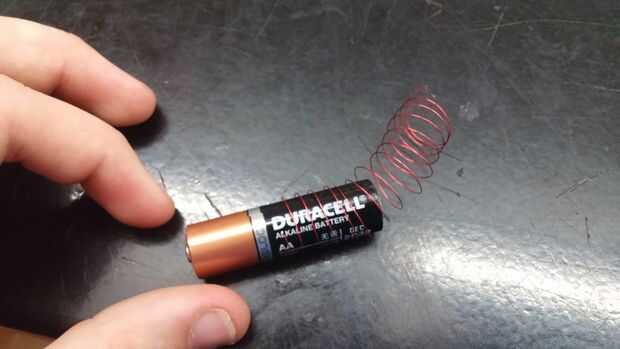 Este es por lejos la parte más difícil. Tomar los 2 pies de alambre magneto y envolver firmemente alrededor de la batería AA. Para evitar que se muevan, coloque su pulgar en su interior y pellizcar. Ahora lo sostiene en una bobina, envuelva algún exceso de cable alrededor de la bobina para mantener juntos. Hacer unas vueltas. Asegúrese de que la bobina se parece a la imagen final.