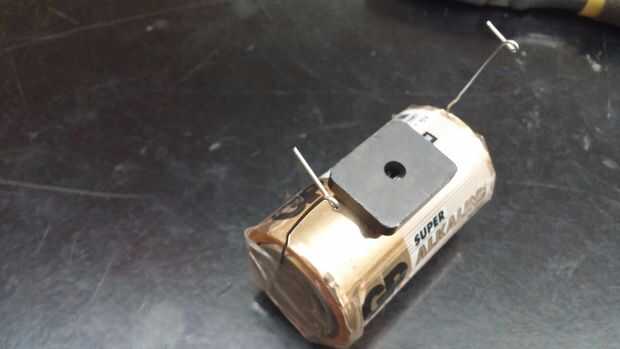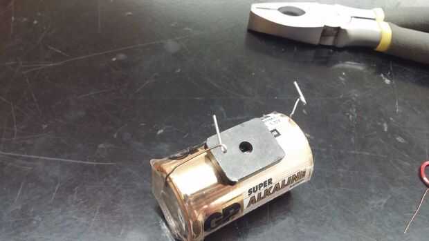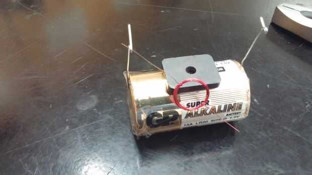 Para crear este motor eléctrico simple, necesitarás:D-pila (1)Clips de papel grandes (2)Banda de goma (1)Imán (1)Alambre de Magneto calibre 26 (brazos una longitud)Papel de lijaCortadores de alambrePaso 1: Enrollar alambre en bobina Tomar el alambre