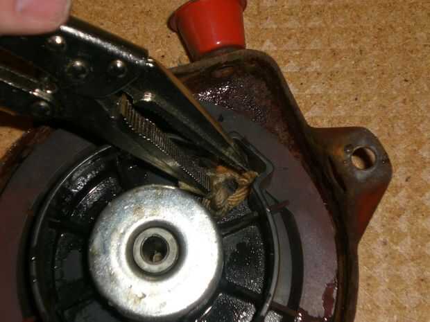 Usted puede descubrir cómo funciona el arrancador de retroceso, girar la polea en sentido horario y contador. Los "perros" o dientes participar cuando la polea se da vuelta hacia la izquierda.