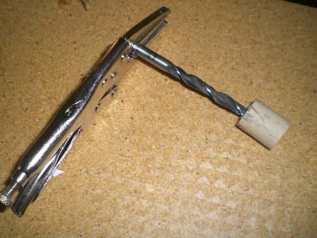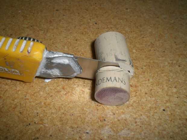 Cortar sobre una media pulgada del corcho puesto que no tiene que ser ese tiempo. Luego perforé un agujero en el corcho para que yo pude pase a lo largo de mi cuerda antes de la manija.