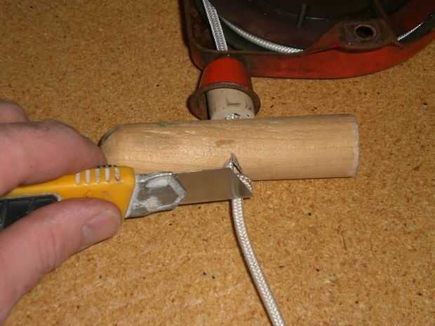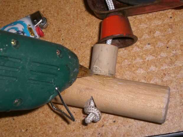 Paso 7: El corcho del hilo de rosca y mango en la cuerda y el nudo
