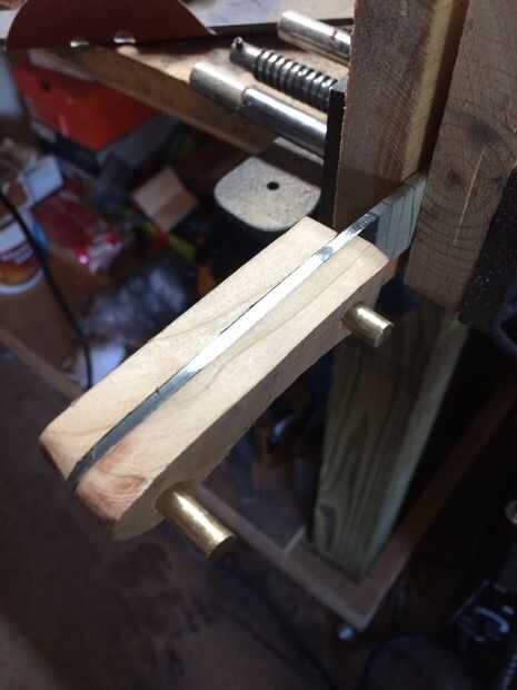 Hay un montón de instrucciones y métodos sobre cómo manejar un cuchillo, así como afilar, así que no entraré en mucho detalle aquí. He utilizado dos escalas cereza adheridas con epoxy 5 minutos y mantiene en su lugar con dos pernos de latón. Lija de grano 400, acabado con aceite de linaza.