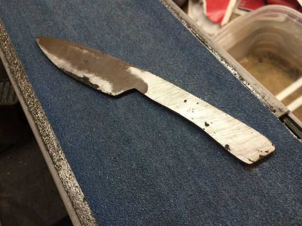 esta hecha de una escofina de herradura vieja.Comencé mi corte con que ambos extremos apagado para tener una sección cuadrada de material para trabajar.Después de eso solía un disco para bajar todos moho.Entonces encontré el centro de la pieza y marc