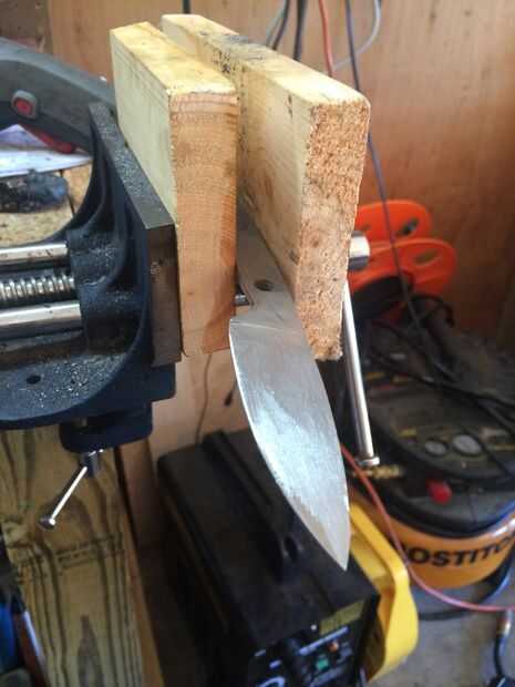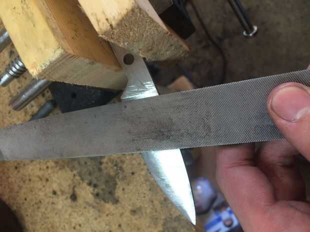 esta hecha de una escofina de herradura vieja.Comencé mi corte con que ambos extremos apagado para tener una sección cuadrada de material para trabajar.Después de eso solía un disco para bajar todos moho.Entonces encontré el centro de la pieza y marc