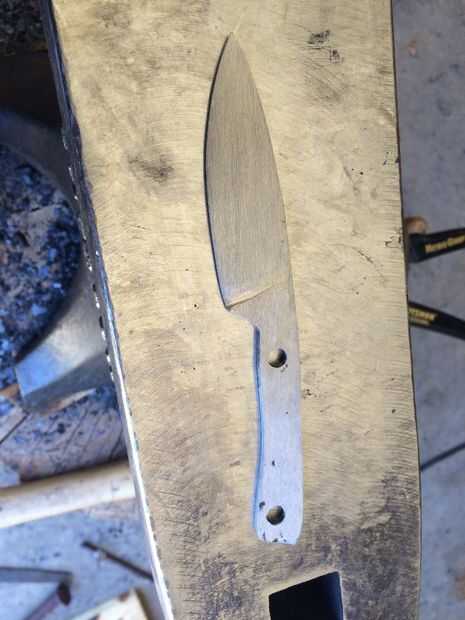 Una vez hecho el depósito, la arena a un grano bastante alto, llevó a cerca de 400. Presentar el borde cerca pero no todos la forma aguda. Quieres un poco de material en el borde para que no deforme en tratamiento de cslor. Ahora perfore unos agujeros para los pernos y del rastro para hacer los patrones para la manija.