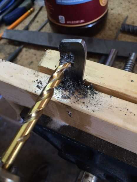 esta hecha de una escofina de herradura vieja.Comencé mi corte con que ambos extremos apagado para tener una sección cuadrada de material para trabajar.Después de eso solía un disco para bajar todos moho.Entonces encontré el centro de la pieza y marc