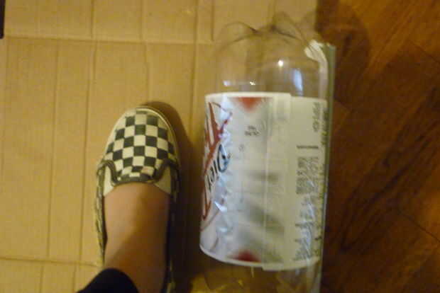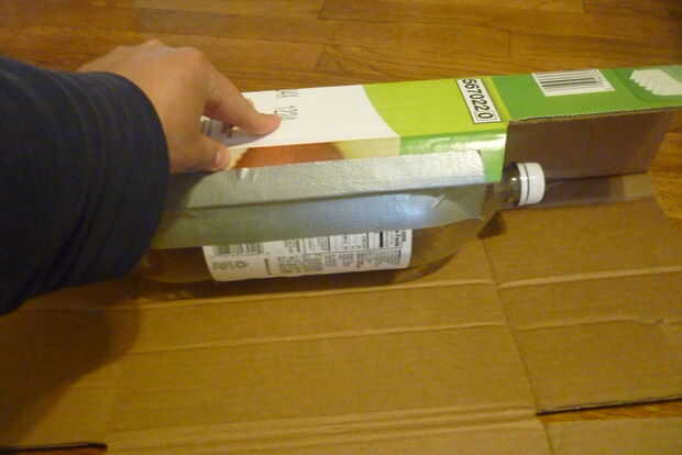 La botella al borde de la caja de la cinta y continuar rodando la caja hacia fuera para evitar los bordes cuadrados.