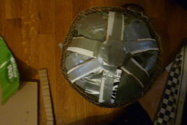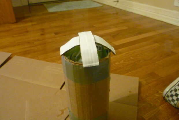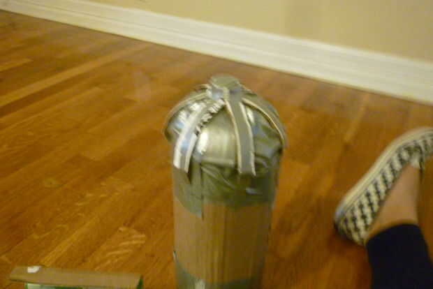 Cinta de quitar la tapa de la botella, que previamente ligadas a la forma redonda de la botella y cinta adhesiva en la parte superior de la cúpula.