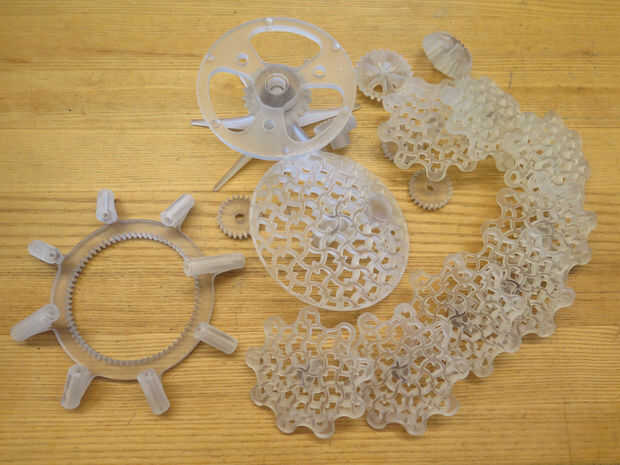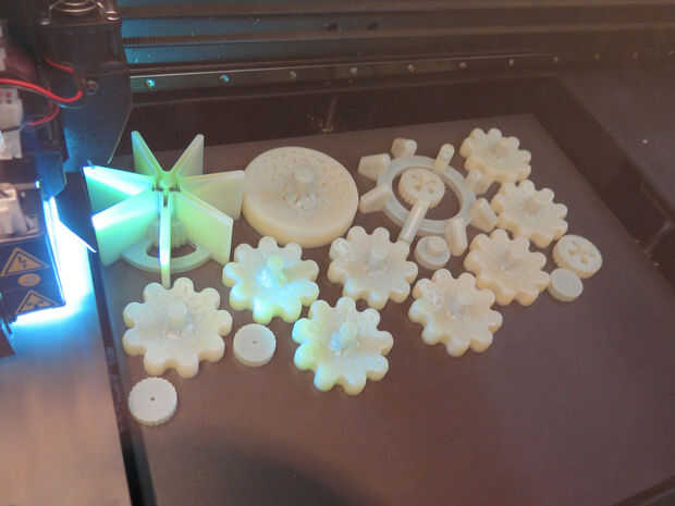 es un simple, 3D imprimibles (ADVERTENCIA: requiere algunos resortes, rodamientos, gomas y tuercas/tornillos), completamente mecánico computadora. Tiene 3, dígito base 10 contadores para la memoria y procesos de una cadena de tarjetas perforadas de 1