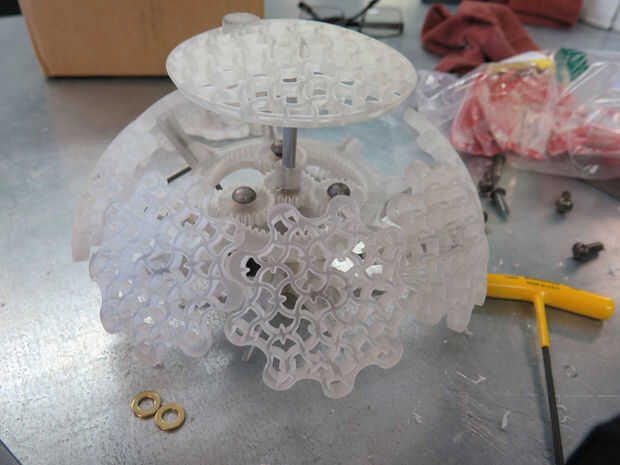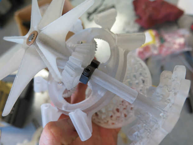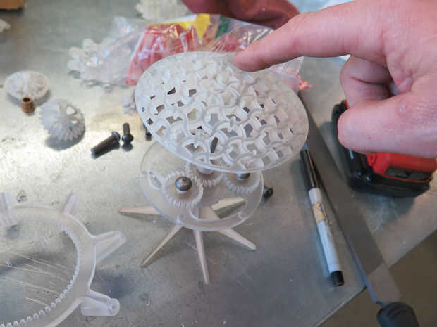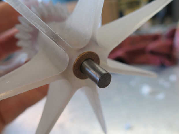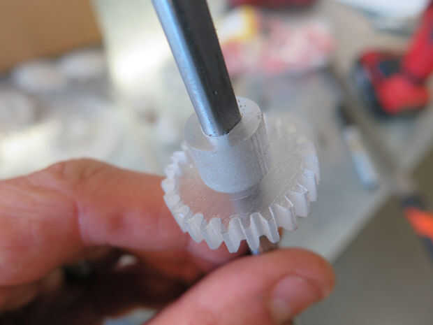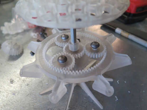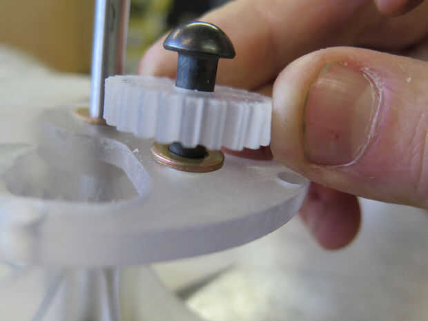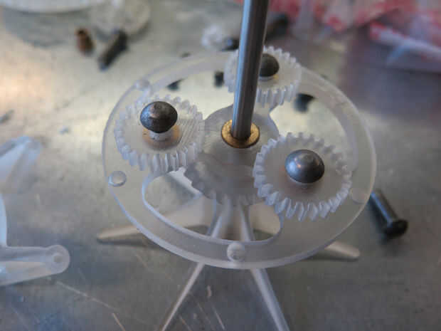 Los engranajes de planeta se colocan utilizando un remache de Cabeza alomada de acero de 1/4" y una arandela para un movimiento suave.