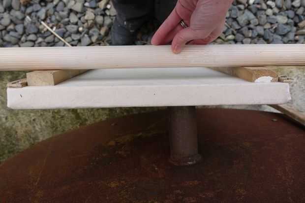 Cuña de la arcilla en el tablero (funciona muy bien una mesa wedging, demasiado) y aplanar con las manos, entonces rodar hacia fuera. Debe ser agradable, con espesor uniforme. Puede utilizar una herramienta de costilla para suavizar las marcas de la lona de su arcilla.