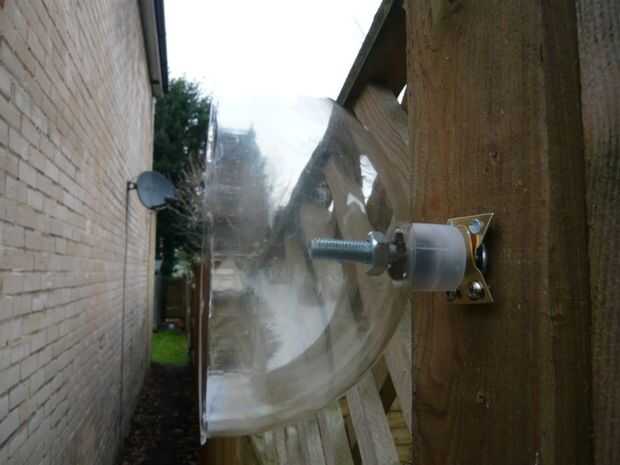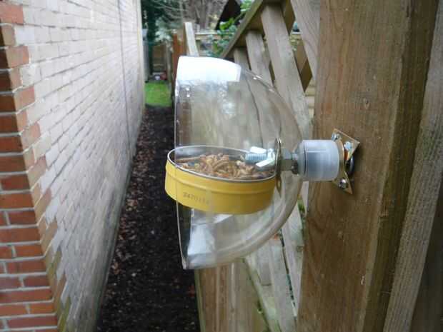 El bandeja de alimentación del pájaro se lleva a cabo en una posición fija mientras que el deflector horizontal montado es libre de girar para que una ardilla no puede conseguir un agarre mientras que las aves pueden entrar libremente en el área de alimentación de la parte delantera.