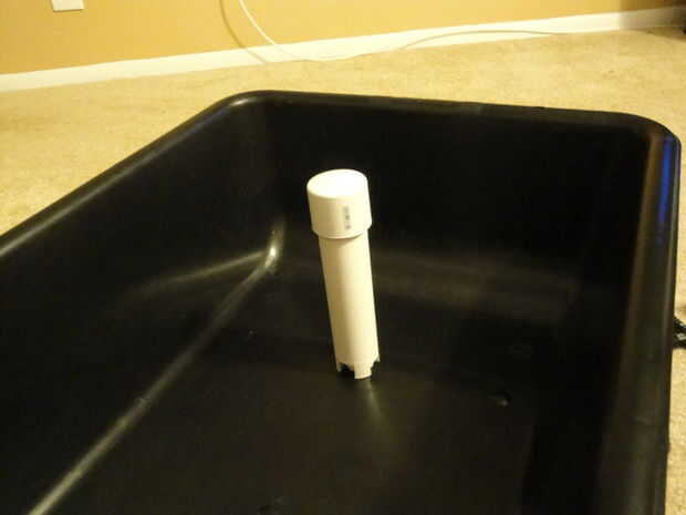 Después de hacer un poco de investigación sobre estos sistemas decidí ir con una inundación y sistema de drenaje. Parece que el sistema más fácil de configurar y mantener y una vez que su hacia arriba y al ejecutarlo se ejecutará con muy poco necesidad de intervención por mi parte. En mis viajes largos y sinuosos a través de varios sitios web, PDF y vídeos por ahí la forma más segura para trabajar este sistema fue el uso de un sifón de bell. Consiste en un tubo de diámetro de 1/2"(el zócalo), la campana de 1 1/4" (un tubo de PVC tapado por almenas en la parte inferior) y un protector de grava (todo lo que he leído dice que desea mantener sobre una proporción de 2:1 en el tamaño de la pipa). El copete se inserta en el adaptador 1/2" macho que pasa a través de un orificio en la parte inferior de la cama crece con una junta tórica para evitar pérdidas de la cama de crecimiento. El adaptador hembra se conecta al adaptador macho desde el exterior de la cama de crecimiento. La Asamblea de drenaje de los 2 codos de 90 grados y 3" largos tubos de PVC se inserta en el adaptador.