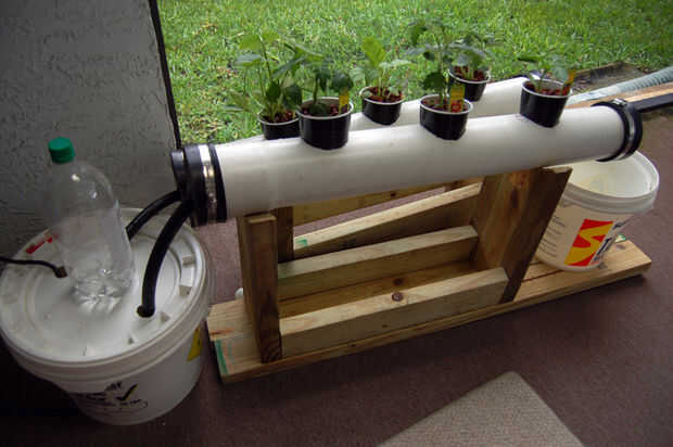 Este sistema hidropónico, compuesta principalmente de un bote de pintura de 5 galones comúnmente encontrado, está diseñado para ser un método rentable, flexible y eficiente para el cultivo de una variedad de plantas en un espacio confinado (es decir,
