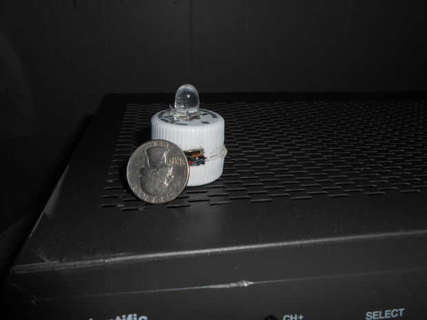 un interruptor permite el led emitir luz. Es un pequeño circuito que puede caber en dos cápsulas pop. Para esta pequeña compilación he utilizado una batería de níquel pequeña de led blanco de 10mm,