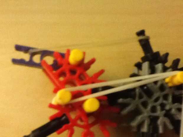 ¡ FELICIDADES!!!!!! Haya terminado el edificio. Para cargar, colocar el extremo de la banda de goma alrededor de la pieza de color púrpura y el otro alrededor de la barra de negro más cercano hacia arriba. (Agregar más: empuje la barra negra con la banda detrás de la cargados en él hacia la empuñadura hasta que escuche el pop de gatillo, repita la primera parte) Apriete el gatillo hasta que oiga un estallido. Suelte el gatillo. Si escuchas dos pops, usted lo había atascado. Para desatascar, tire cualquier barra de negro (en las mecánicas de carga) hasta las Cataratas del gatillo en su lugar.