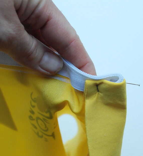 Es necesario voltear el cuello para que el borde puede ver alineado con la costura del cuello. Este perno en su lugar. Coloque la parte superior como cerca de los dientes de la cremallera como sea posible en la parte delantera. En el reverso aunque necesita el zip del ángulo hacia el interior. Si no hacerlo y doblar recto sobre usted encontrará que los dientes hacen realmente difícil cerrar la cremallera a la parte superior. Este perno en su lugar y hacer lo mismo en el otro lado.