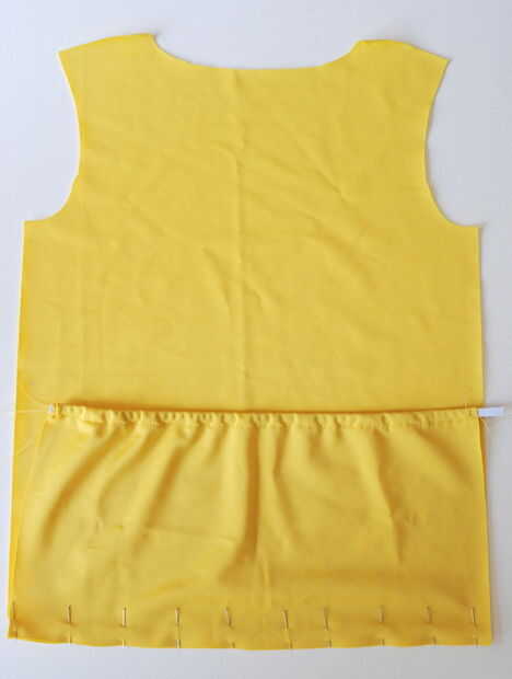 Prender el bolsillo y juntos de nuevo piezas en las marcas de bolsillo. Bien la puntada hacia abajo el elástico en la parte superior y luego coser las líneas marcadas para crear los bolsillos.