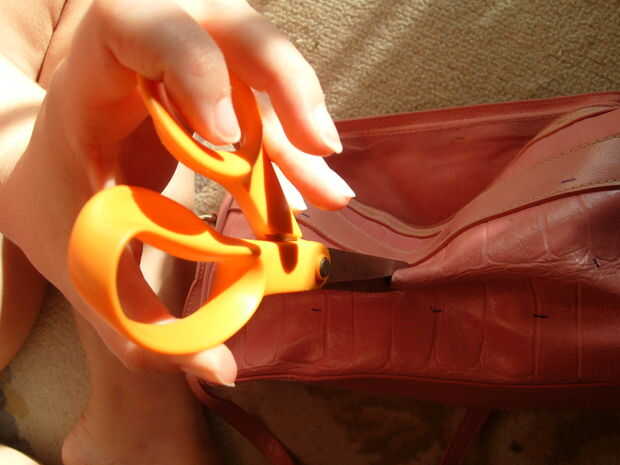 SIN HACER UN CORTE GRANDE! Corte suficiente para hacer un pequeño agujero que tijeras caben en cortar a lo largo de sus líneas.