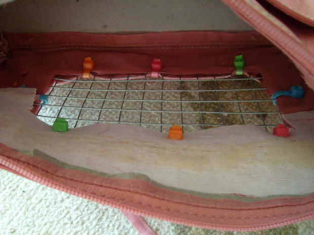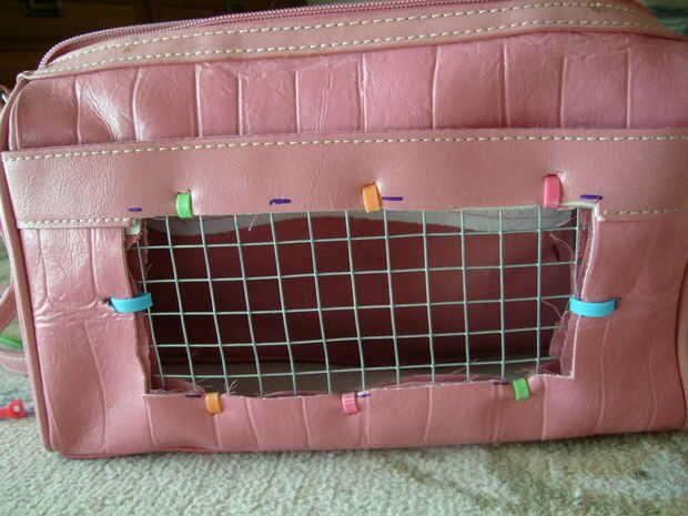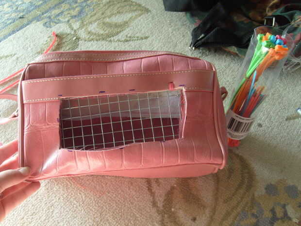 Es el momento para insertar el cable. Usted puede hacer esto en una multitud de maneras, pero te sugiero que si usted alambre ha sostenido los bordes que cubre. Hice esto introduciendo mi alambre donde un bolsillo solía ser. Deslizarse perfectamente en su lugar. Sin embargo, que no tiene tanta suerte con la bolsa que haya elegido. Si no tienes esta opción puede cubrir los extremos del cable de su corte un pedazo largo de material y envolviéndola alrededor de los bordes. También puede adjuntar el cable a la parte delantera o espalda o su bolso.
