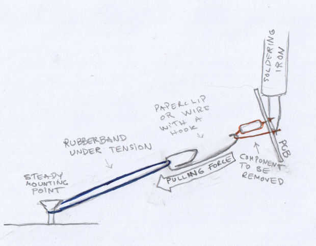 Descargo de responsabilidad: Esto no mis propias ideas y no tomar ningún crédito.Libahunt había publicado un instructivo bajo el título "Truco para desoldar a través de componentes de agujero" y fred3655 y otros ofrecen más sugerencias.Idea de L