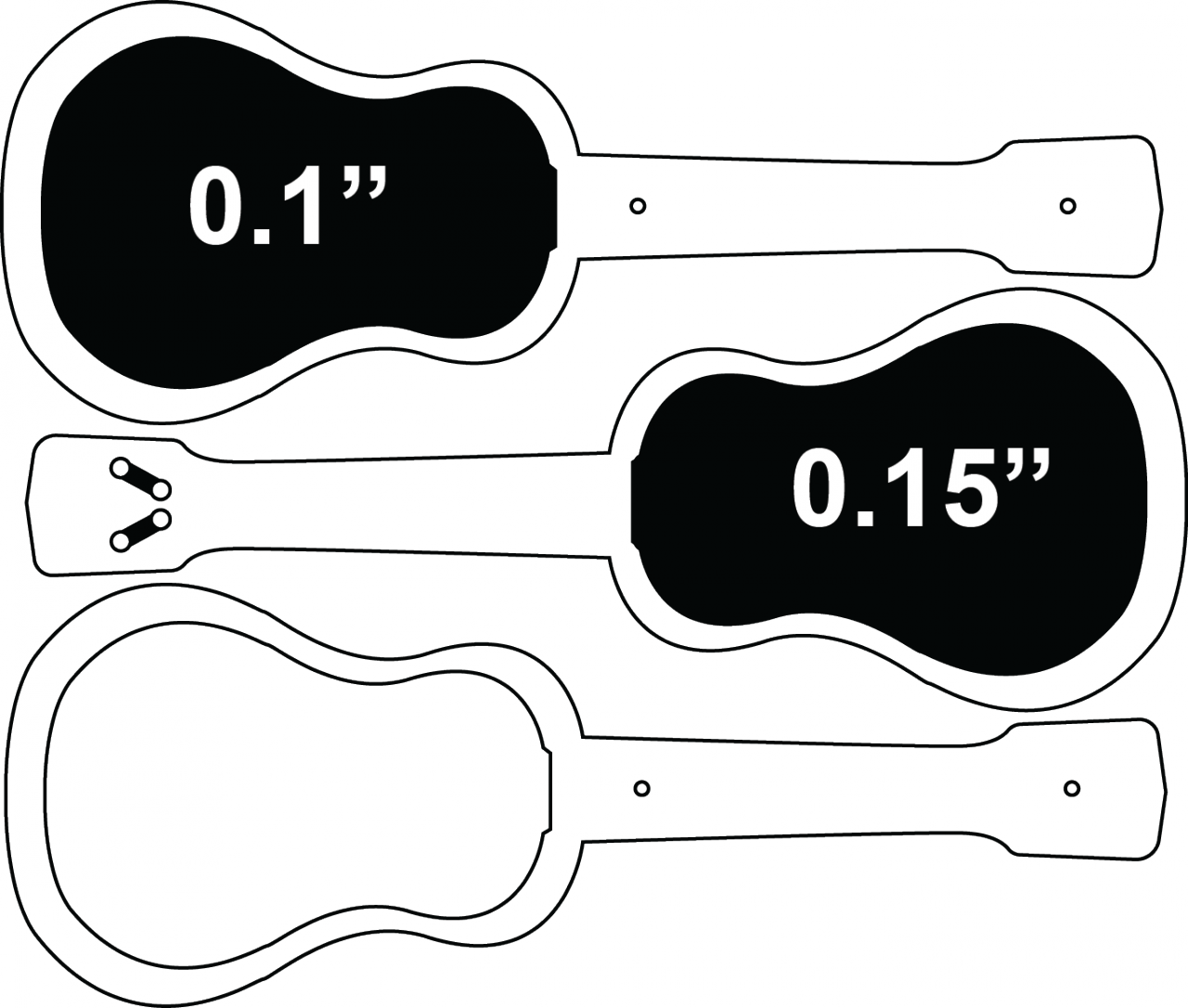 Tomar la madera contrachapada y usar un cortador láser para cortar las piezas de tres ukelele. Cada cortador del laser trabaja hacen un poco diferente así que seguro que está usando uno que sabe cómo manejar. Descargar el archivo de Illustrator.