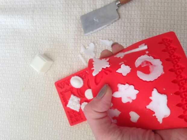 Situado a un lado los moldes para endurecer durante unos diez minutos. Usted puede pegarlas en la nevera Si te sientes impaciente. Generalmente estoy. : D Doble los moldes para sacar cada pepita pequeña de jabón. Debe deslizarse justo hacia fuera. Colóquelos a un lado para que pueda utilizar los moldes para hacer unos juegos más.