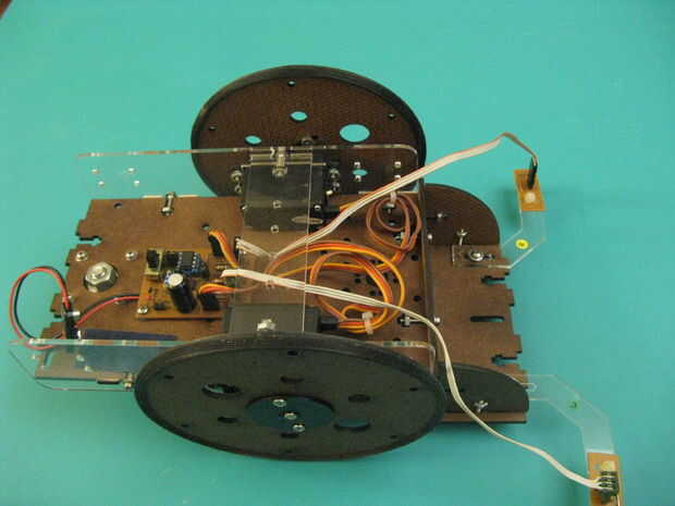Construir un robot de 1/20 pulgada cúbica con una pinza que puede recoger y mover pequeños objetos. Es controlado por un microcontrolador Picaxe. En este momento, creo que esto puede ser más pequeño robot con ruedas del mundo con una pinza. Cambiará