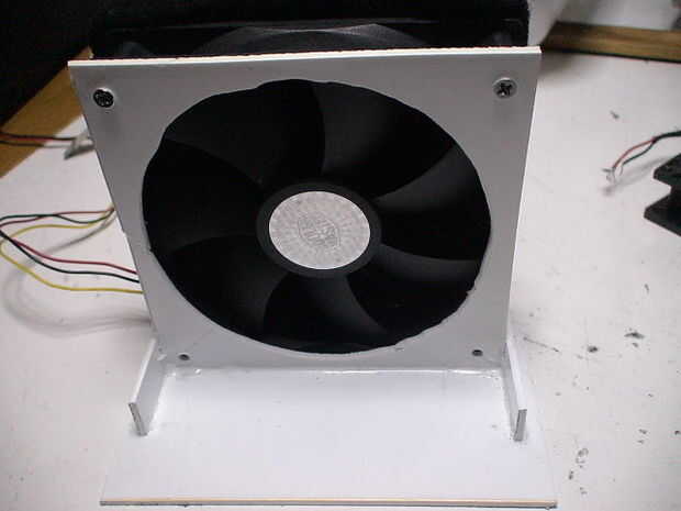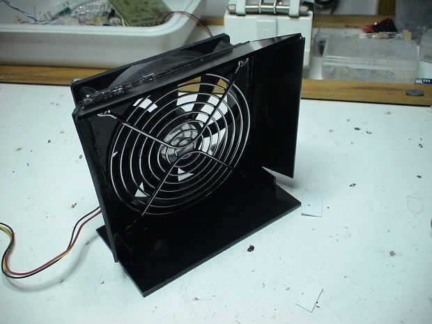 Encontrar una fuente de alimentación de 12 voltios adecuados y el alambre hasta el ventilador, ocupándose de la polaridad. Rojo al positivo, negro al negativo. Utilizar una fuente de alimentación de PC modificada para energía.