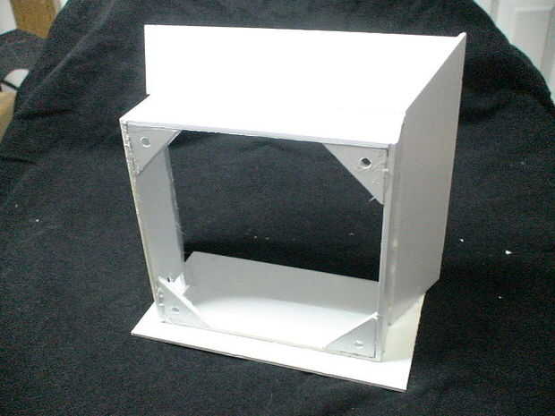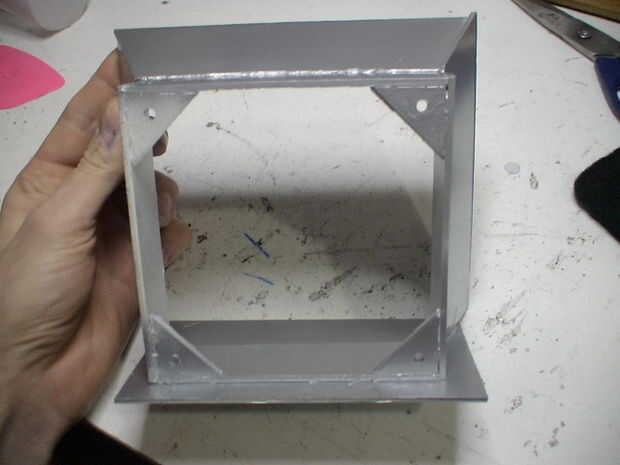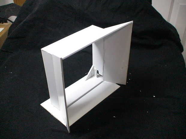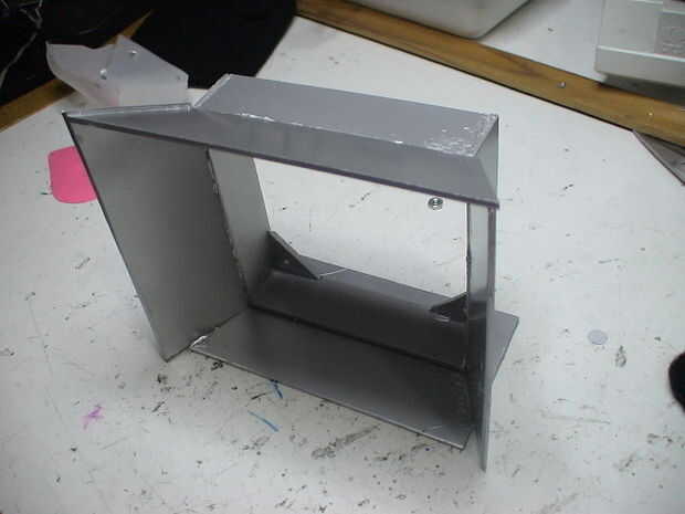 Pensé sólo podía intercambiar los ventiladores con la antigua vivienda pero por supuesto no encajarán bien, así que construí una nueva. La misma manera con el poliestireno. Pintado plata. Es bastante de gran alcance y más de lo que hace el trabajo, fuerte aunque.