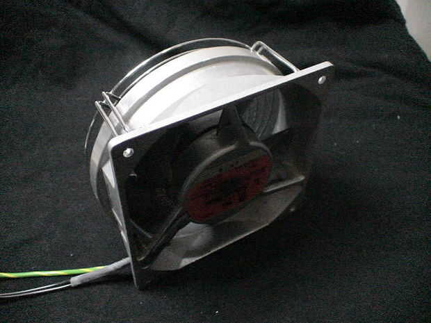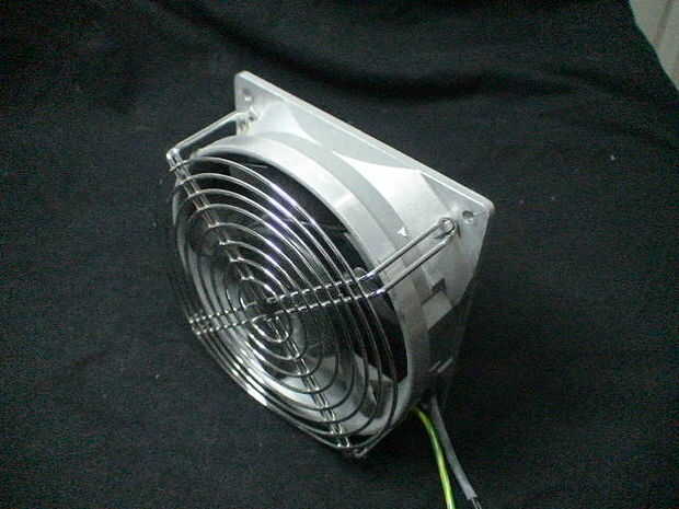 Por lo que me ha gustado mucho la he construido pero no era bastante fuerte bastante así que compré un ventilador de AC de 120v del mismo tamaño con carcasa de hierro fundido, superávit de $9,95.