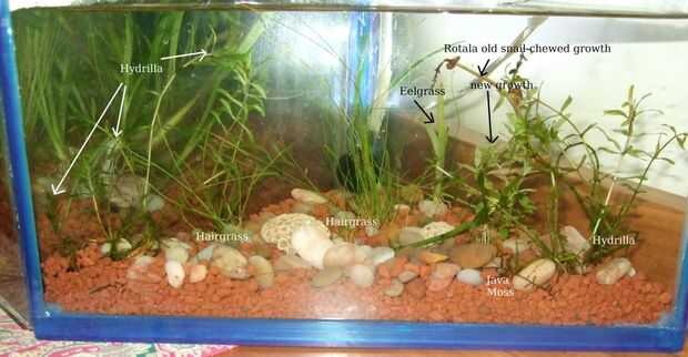 Quería crear un ambiente saludable para los animales que yo estaba manteniendo así que compré algunas plantas de acuario para proporcionar oxígeno y tal vez alimento para los caracoles.
