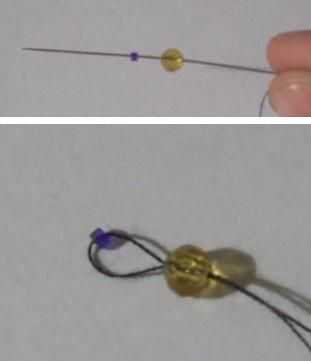 Pase la aguja a través de una columna de grano por lo que está cerrando uno de los granos base subiendo a través del centro de la flor. Añadir un grano de tamaño mediano y el grano de un cilindro, volver a bajar por el grano de tamaño medio y la parte inferior de la flor. El hilo debe ser en la parte inferior de la flor. Añadir unos granos de tamaño medio para hacer el tallo, agregando una gota de cilindro en la parte inferior. Acumular la aguja a través de todos los granos de tamaño medio utilizados para la madre.