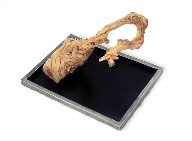 Todo el grapewood realmente necesita es una base agradable para acentuar visualmente, mantenga estable y por supuesto coger excrementos (aves es necesitan tanto caca?). El acero es un material duradero, durable que las aves no pueden masticar, lo que es perfecto para la base.