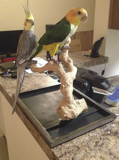 Los accesorios del animal doméstico que he encontrado en tiendas hacen de pobre decoración. Quería crear una percha que vean bien como un adorno de escritorio, sino siendo pájaro-caja de seguridad. Grapewood (o vid de uva envejecida) es una forma fácil de encontrar madera que naturalmente viene en interesantes formas.