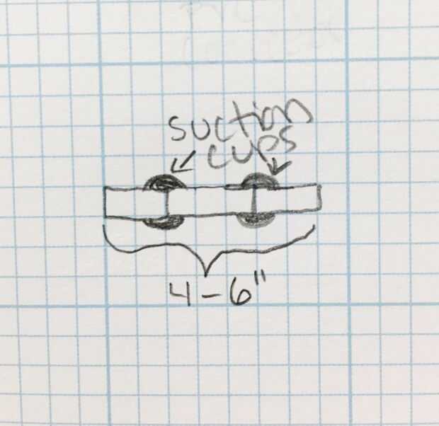 Así que por mi irracional miedo de muerte por ducha, he optado por un diseño sin nada que realmente sobresale. Cecil es muy pequeño, así que no necesita una gran percha. Acabé usando un tubo de PVC de 6" de la percha principal y conectado a un conector de codo en ella para agregar una pierna de 2" para que Cecil podría acercarse a la cabeza de ducha si quería.