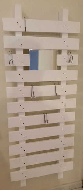 Yo he intentado sin suerte, durante algún tiempo encontrar un mueble (percha) que se adapte a mis necesidades. El único lugar de mi casa que podría acomodar un gancho fue una pequeña pared vacía al lado de las escaleras.