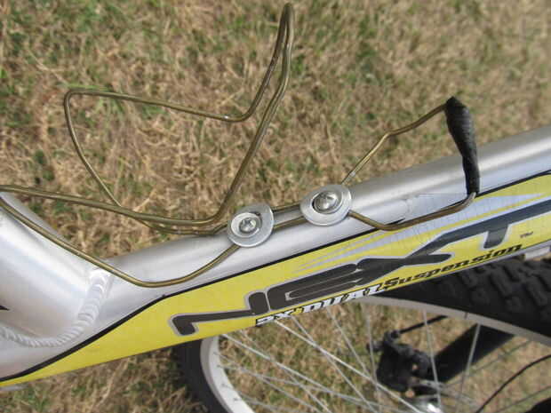 Ok, ahora agarra tu taladro, tornillos y arandelas. Tomar sus arandelas y un poco doblarlas un poco para que quede la curva del tubo para un ajuste más apretado. Utilicé tornillos de madera, pero realmente nada de lo que cabe firmemente funcionará. Marque y taladre los agujeros, poner la lavadora en. Y probarlo. Si cae al andar (como mina) sólo la curva más apretada. Esa es la belleza de este diseño, es super fácil de ajustar.