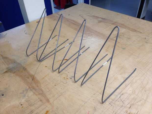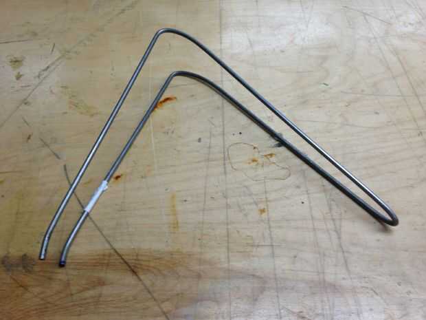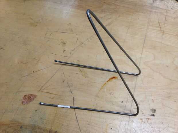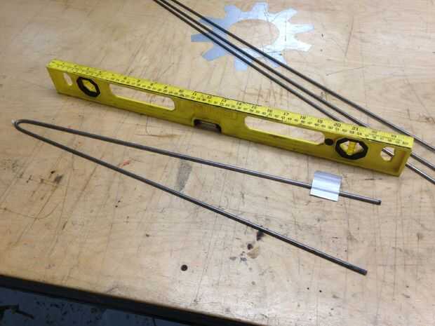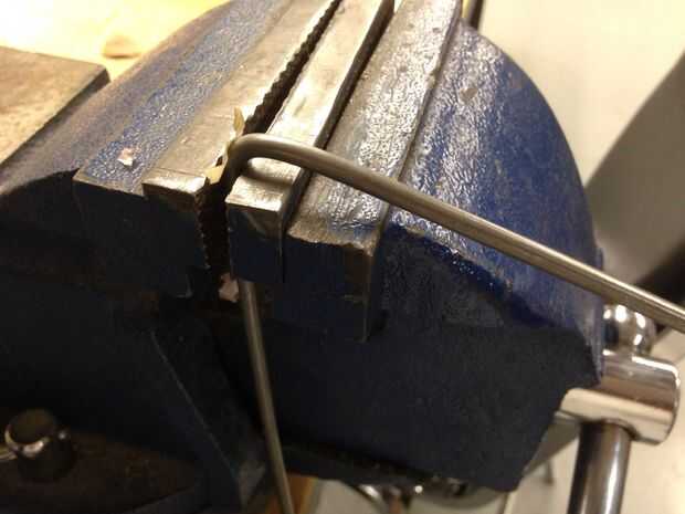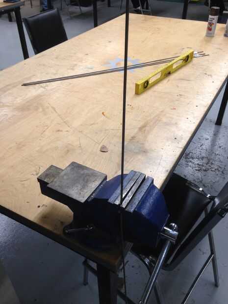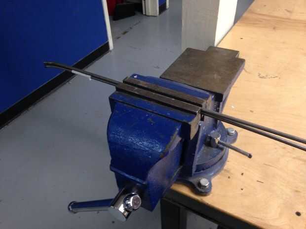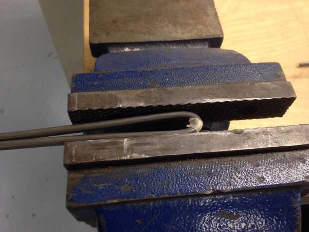 Utilice un tornillo de banco para sujetar la varilla mientras que dobla un ángulo de 90 grados en la barra.