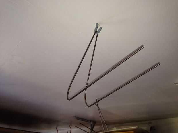 Atornille el gancho en el techo y asegúrese de entra profundamente en un haz de luz - no quieres tu avión a caer porque el tornillo se retiró de los paneles de techo!