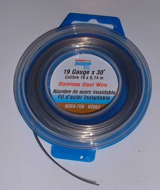 2) calibre 19 o alambre de acero inoxidable pesado. Calibrador de números bajo es alambre más pesado. Debe ser acero inoxidable, otra vez por lo que no aherrumbrará y mancha la ropa.