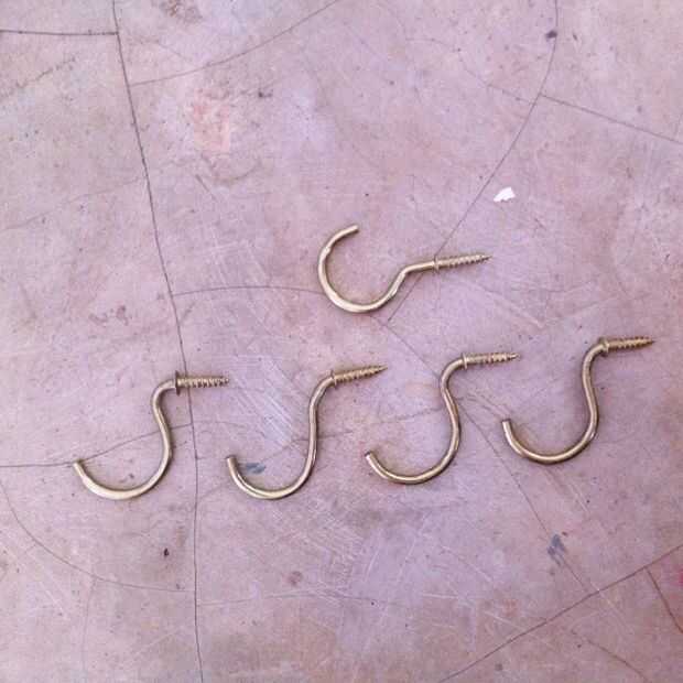 Doblado el regular' ganchos atornillándolas a un tablón y golpeando suavemente y doblado en forma de una cola. Tenemos mucho recambio como muy probablemente se romperán algunos!