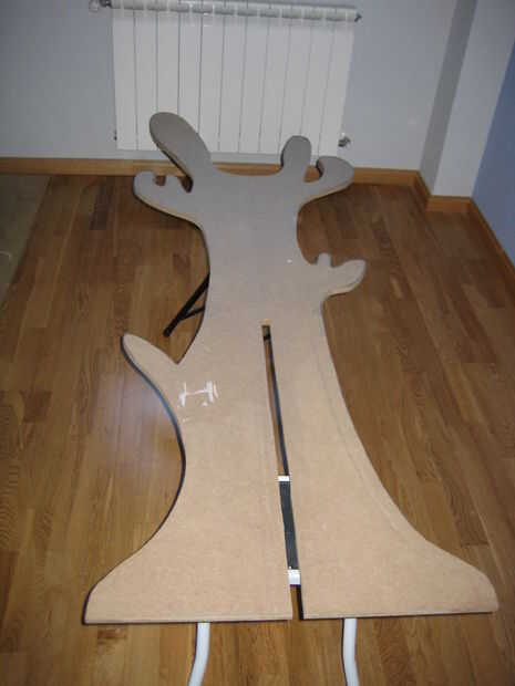 Cortamos con la sierra de calar siguiendo el trazo hemos dibujado y hacemos el corte de la guardabarros párr encajar la otra parte del árbol